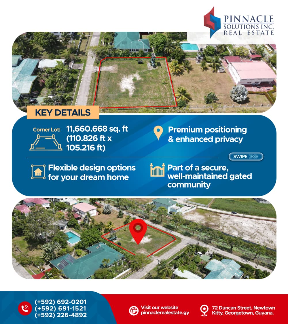 Secure your spot in the prestigious New Providence Gated COmmunity along the highly sought-after East Bank Demerara Corridor